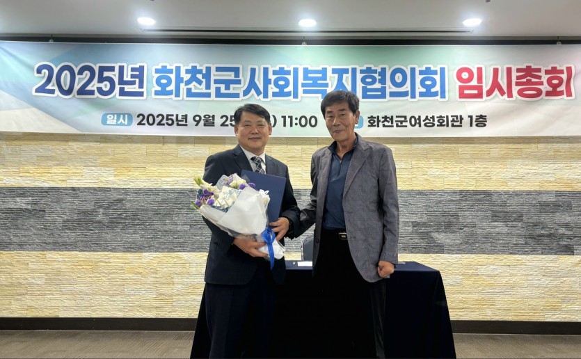 2025년 9월 25일 개최된 화천군사회복지협의회 임시총회에서 제8대 화천군사회복지협의회 회장으로 나병학 회장님께서 당선되셨음을 알려드립니다.