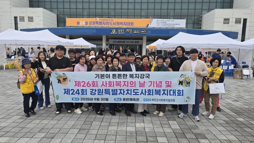 지난 9월 30일 춘천 호반체육관에서 열린 제26회 사회복지의 날 기념 및 제24회 강원특별자치도사회복지대회에 화천군사회복지협의회 나병학 회장과 회원들이 함께 참석하였습니다.